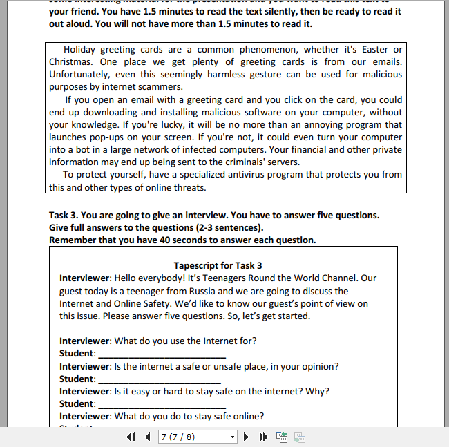 Материал для подготовки к ЕГЭ по английскому языку по теме «Интернет-безопасность»